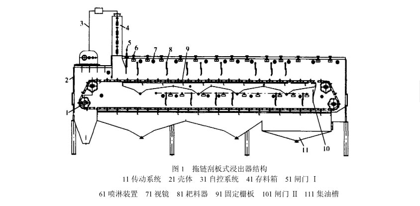 浸出設(shè)備拖鏈刮板式浸出器是在環(huán)形浸出器和履帶式浸出器的基礎(chǔ)上,設(shè)計(jì)并推廣應(yīng)用的新型浸出器,特別適合于較大規(guī)模的油料浸出。該類型浸出器以其對(duì)物料強(qiáng)大的適應(yīng)性,穩(wěn)定的運(yùn)行可靠性以及優(yōu)良的浸出指標(biāo)頗受用戶歡迎。